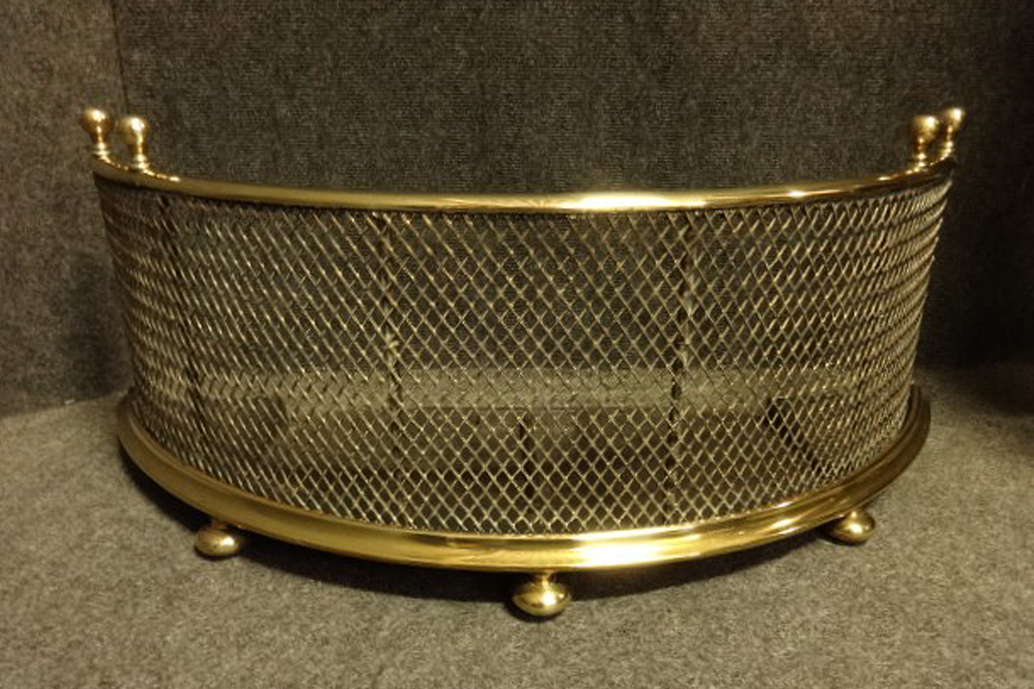 This is a very good 19th Century Regency antique brass fender of small proportions. It has a brass mesh, turned feet, iron base. All in excellent condition.