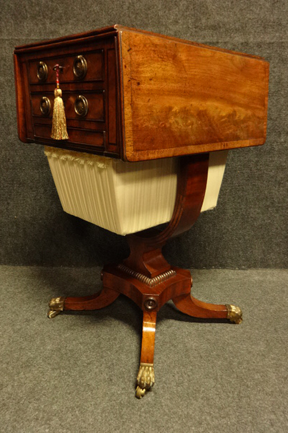 Crossbanded top over two drawers and lower pull out storage box. centre pedestal with brass paw castors, original key, in very good original condition.