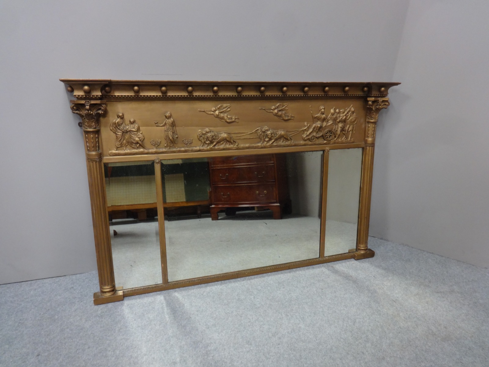 A fine Regency gilt overmantle mirror, three original glasses, some foxing, but otherwise in excellent original condition.