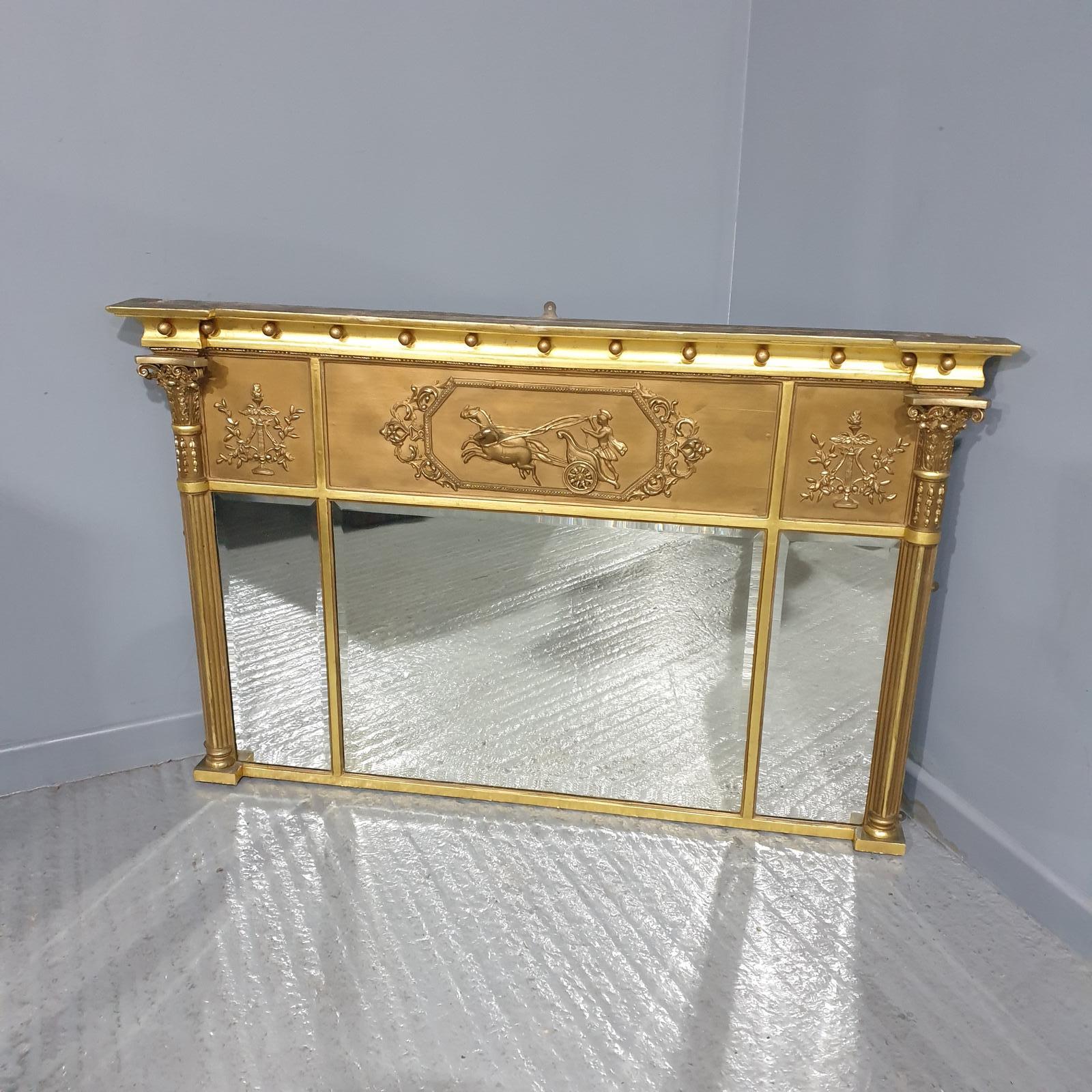 This is a very good early 19th Century Regency antique overmantle mirror with three bevelled mirrors, original back boards, in overall very good condition.