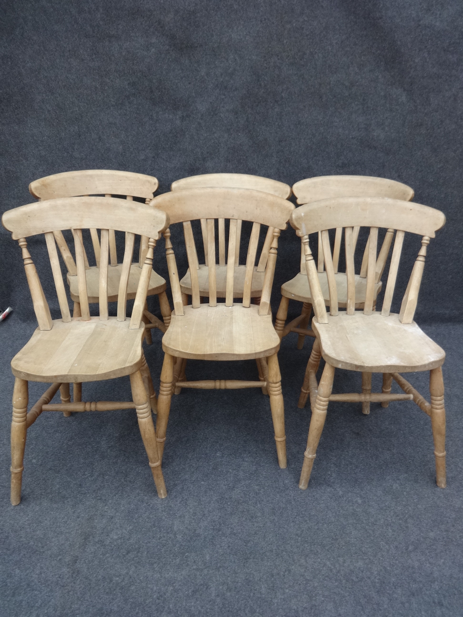 This is a good set of slat backed kitchen dining chairs in very good original condition.