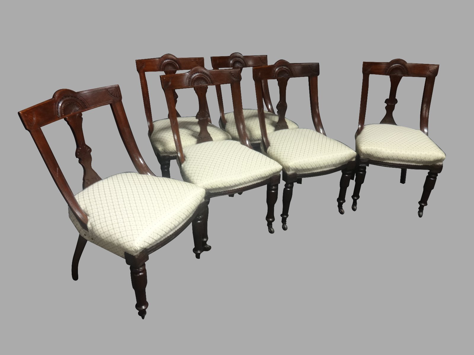 These are a newly upholstered set of six 19th Century Victorian antique walnut dining chairs, in excellent condition.