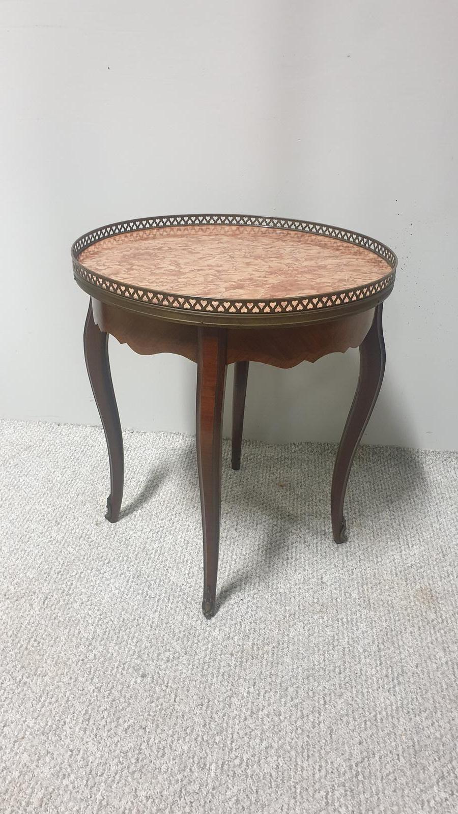 A very good inlaid tulipwood French inlaid occasional table, wit brass feet and heart shaped brass gallery, in excellent original condition.