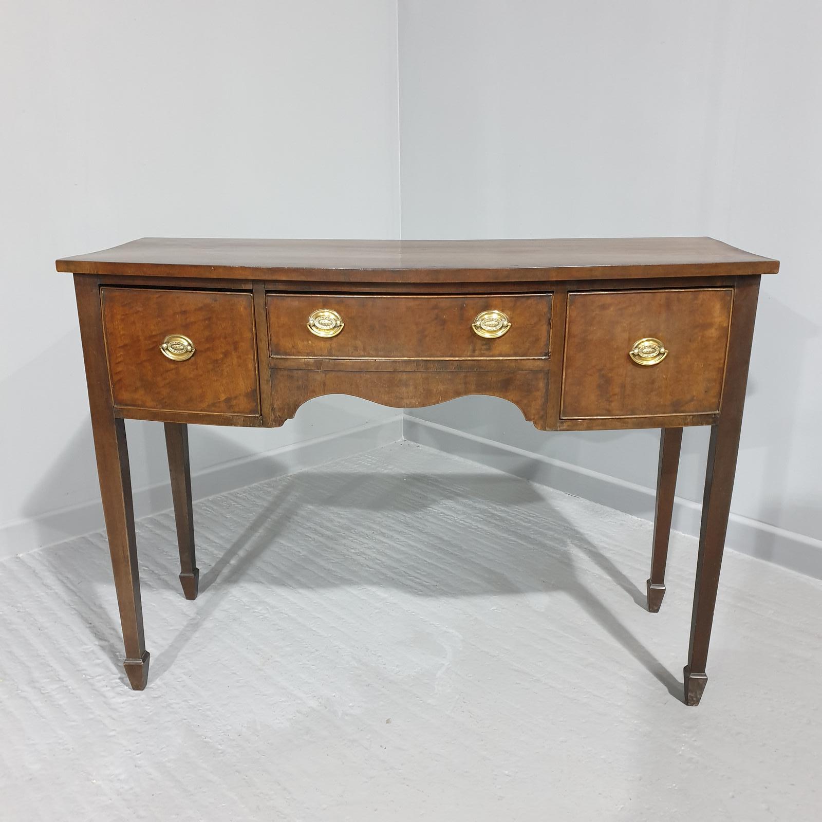 This is a small proportioned Georgian style three drawer bowed mahogany sideboard, in original very nice condition.