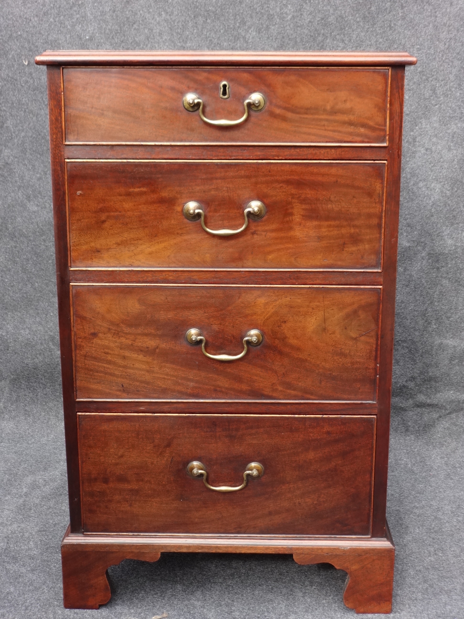 A good sized 4 drawer Georgian chest with original swan necked handles, cockbeaded drawers, standing on bracket feet, in excellent condition.