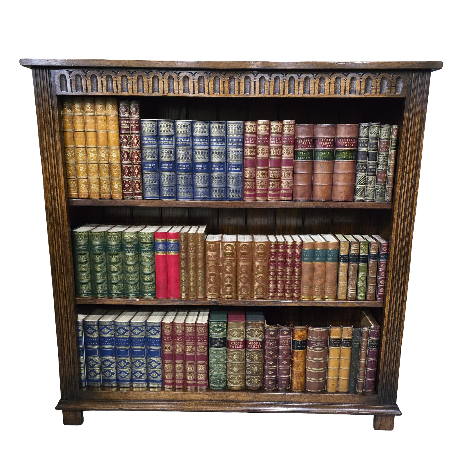 Excellent quality solid oak, open adjustable library bookcase, two shelves, in excellent home ready condition having been waxed in our showrooms.