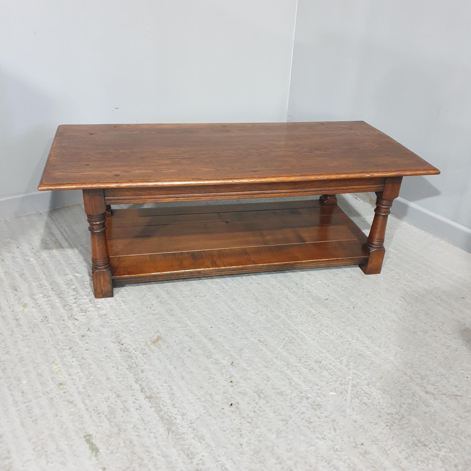 Very good solid plank coffee table with plank undertier, peg jointed throughout.