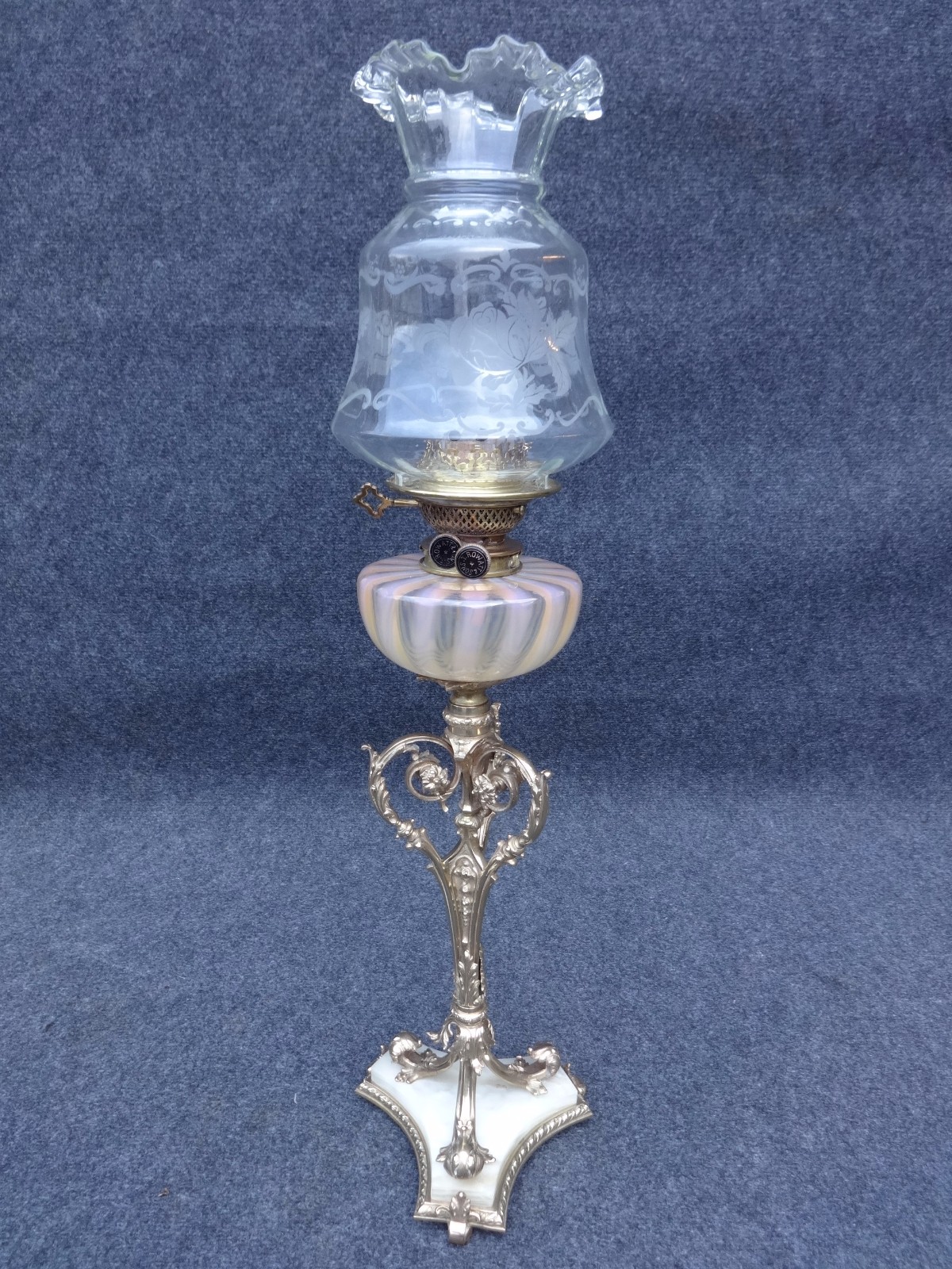 Stunning Brass, Alabaster and Opaline Oil Lamp 1880