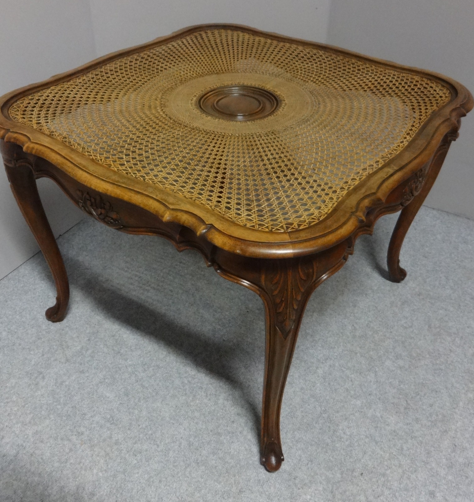 A very good quality mahogany coffee table with top quality bergere. original glass top.