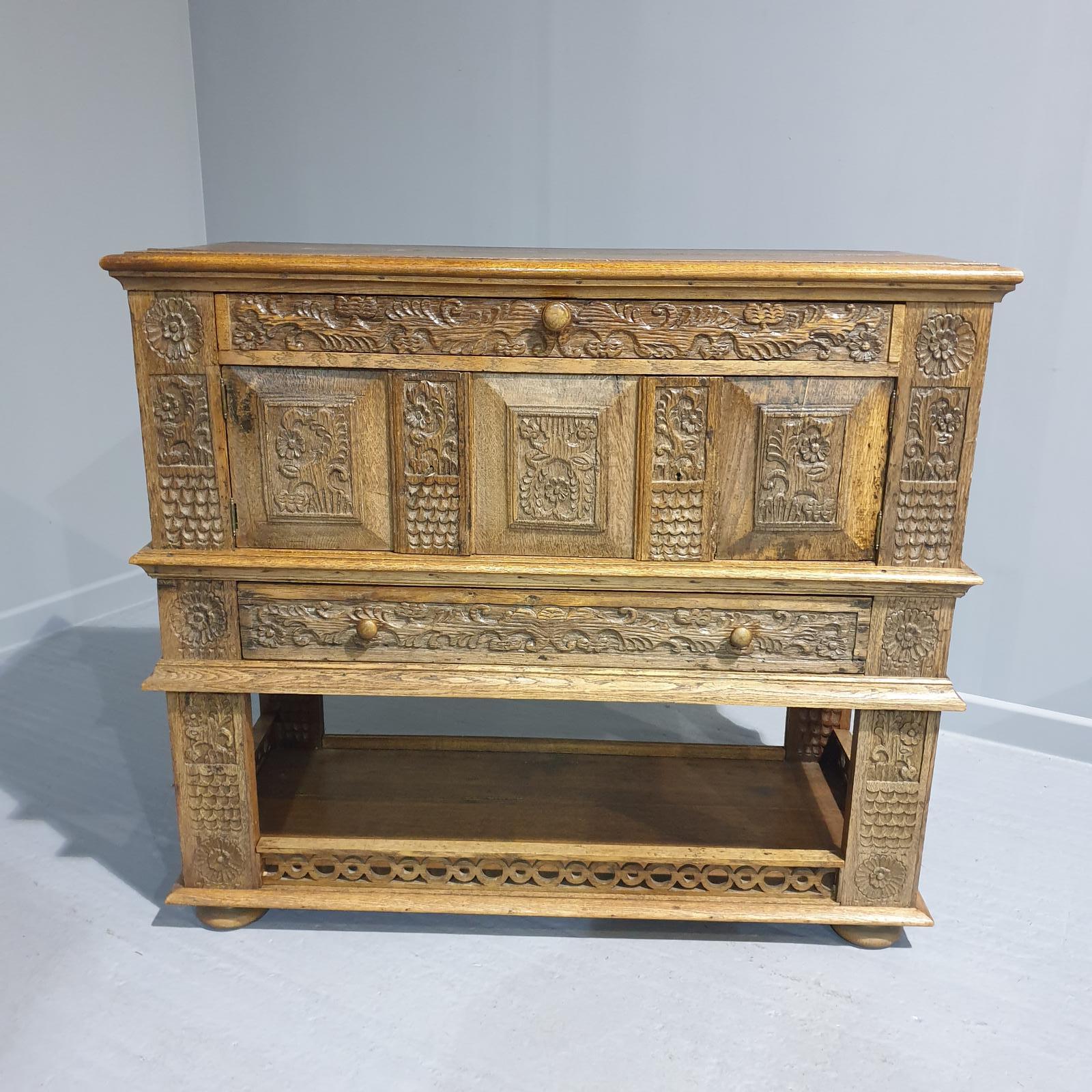 This is a very nice 19th Century antique two door and two drawer bleached oak side cabinet, with lovely carvings, in very good original condition.