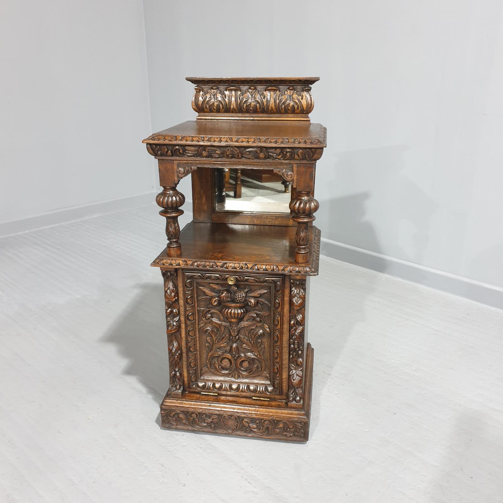 This is a very nice deeply carved late 19th Century Victorian antique oak coal bin, in overall very good condition.