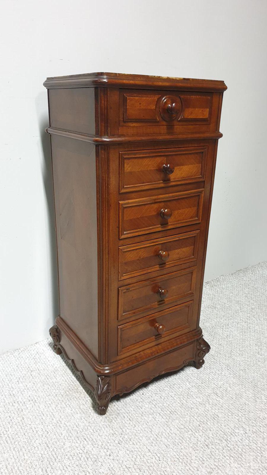 A very good French rosewood four drawer chest of drawers with a two drawer faux pull down with marble interior, excellent quality routered marble top, in excellent condition.