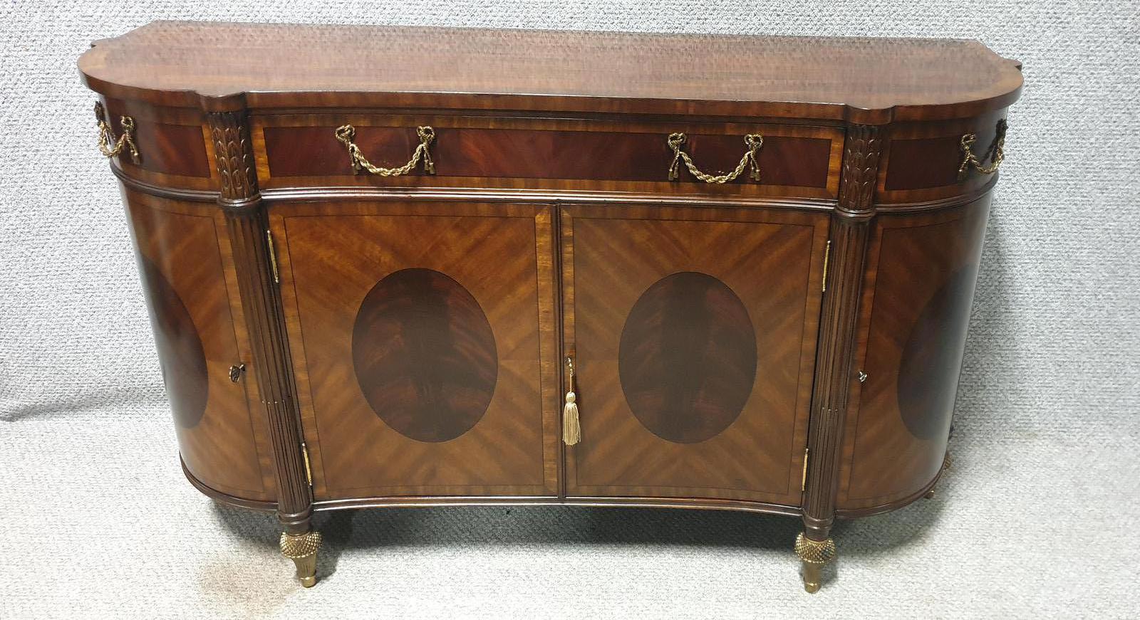 A very nice bowed mahogany sideboard , cupboards either side a central cupboard with drawer over, fancy brass feet and handles, excellent colour and condition.