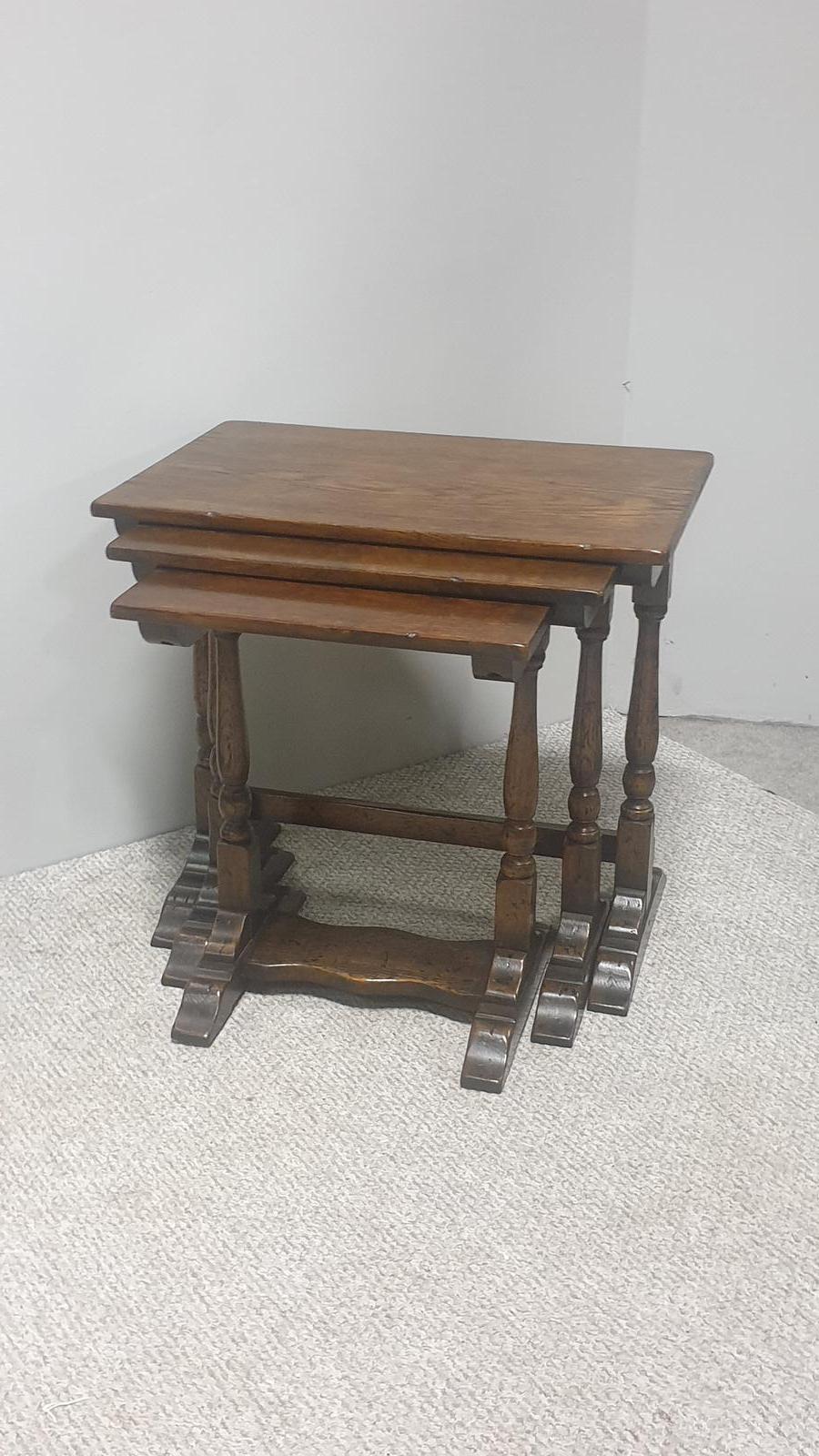 This is a very good solid oak nest of three tables, in excellent original condition.