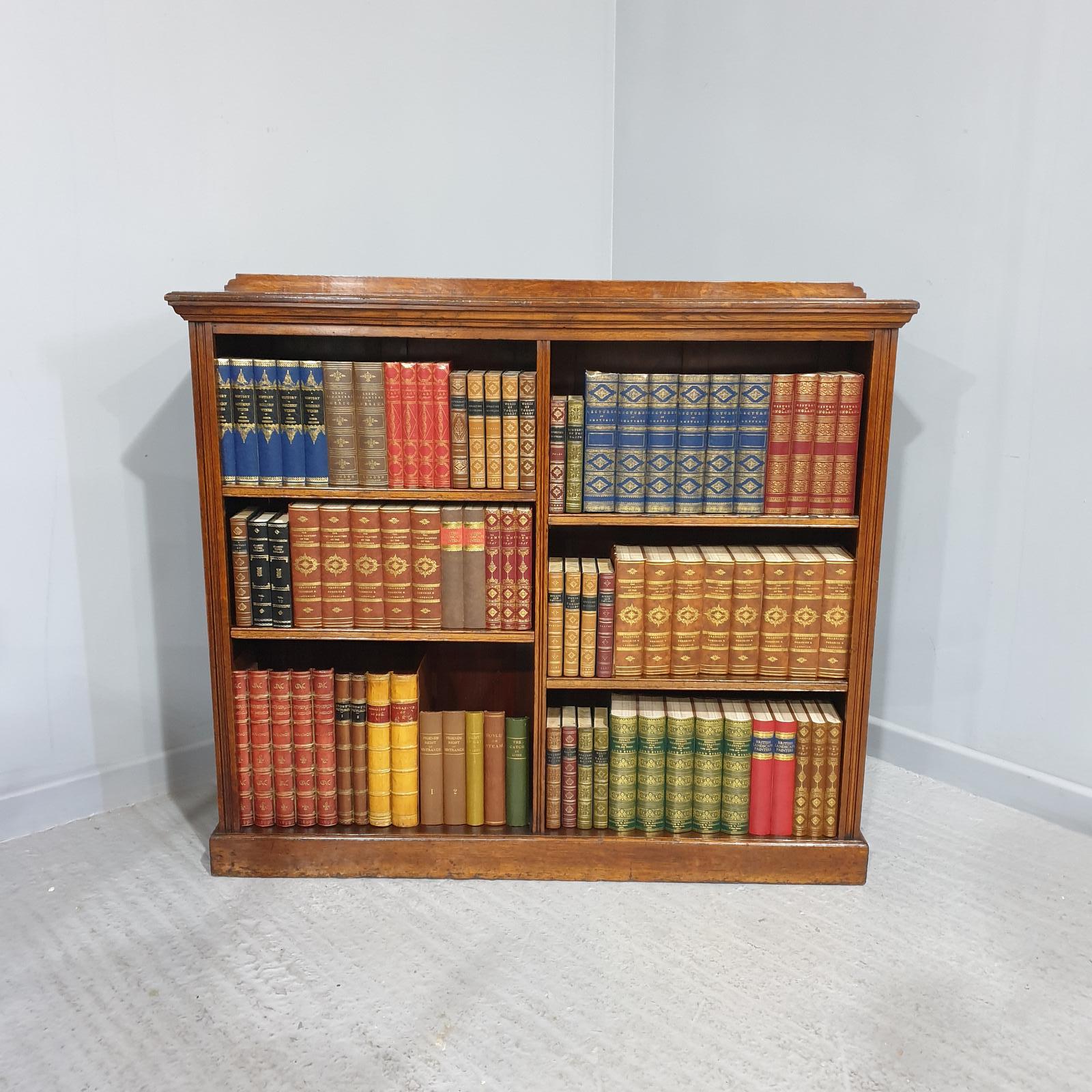 This is a very good quality late 19th Century antique solid oak four adjustable shelves, open library bookcase, metal supports, in overall very good condition.