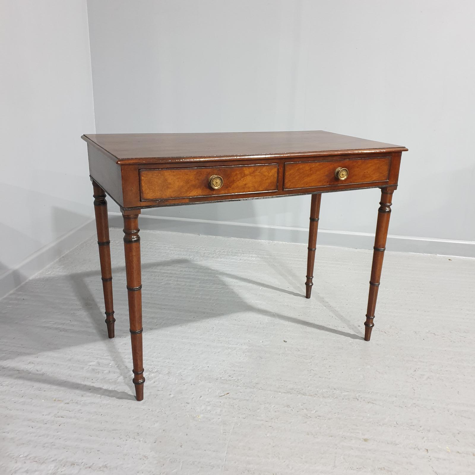 This is a very nice early 19th Century Regency antique mahogany side table with ring turned legs and original brass knobs, in very good original condition.