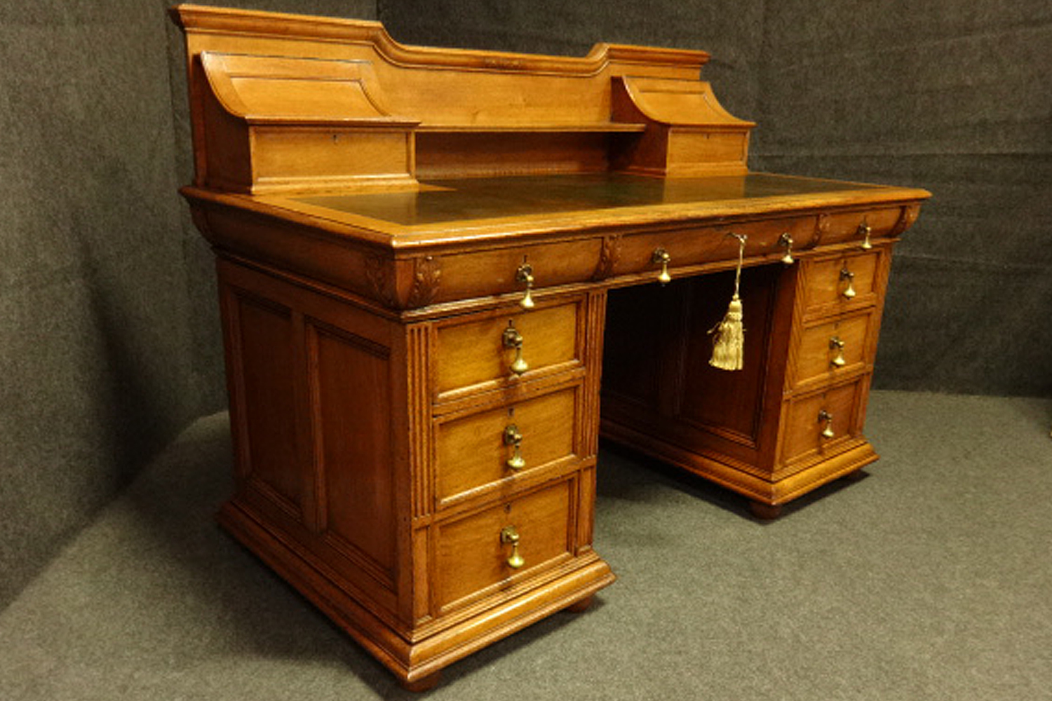 Superb Freestanding Golden Oak Pedestal Desk c.1900