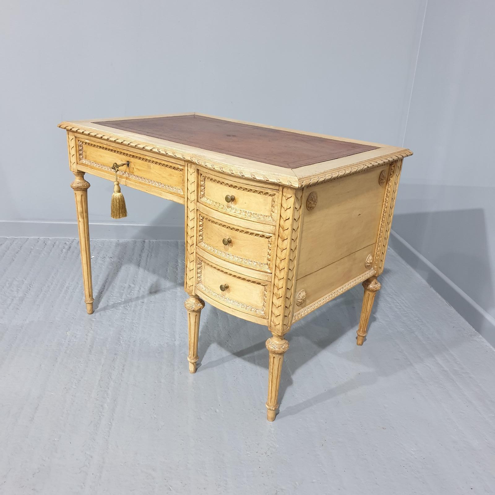 This is a very good late 19th Century French antique kneehole desk, three bowed drawers and a large single drawer, in excellent original condition.