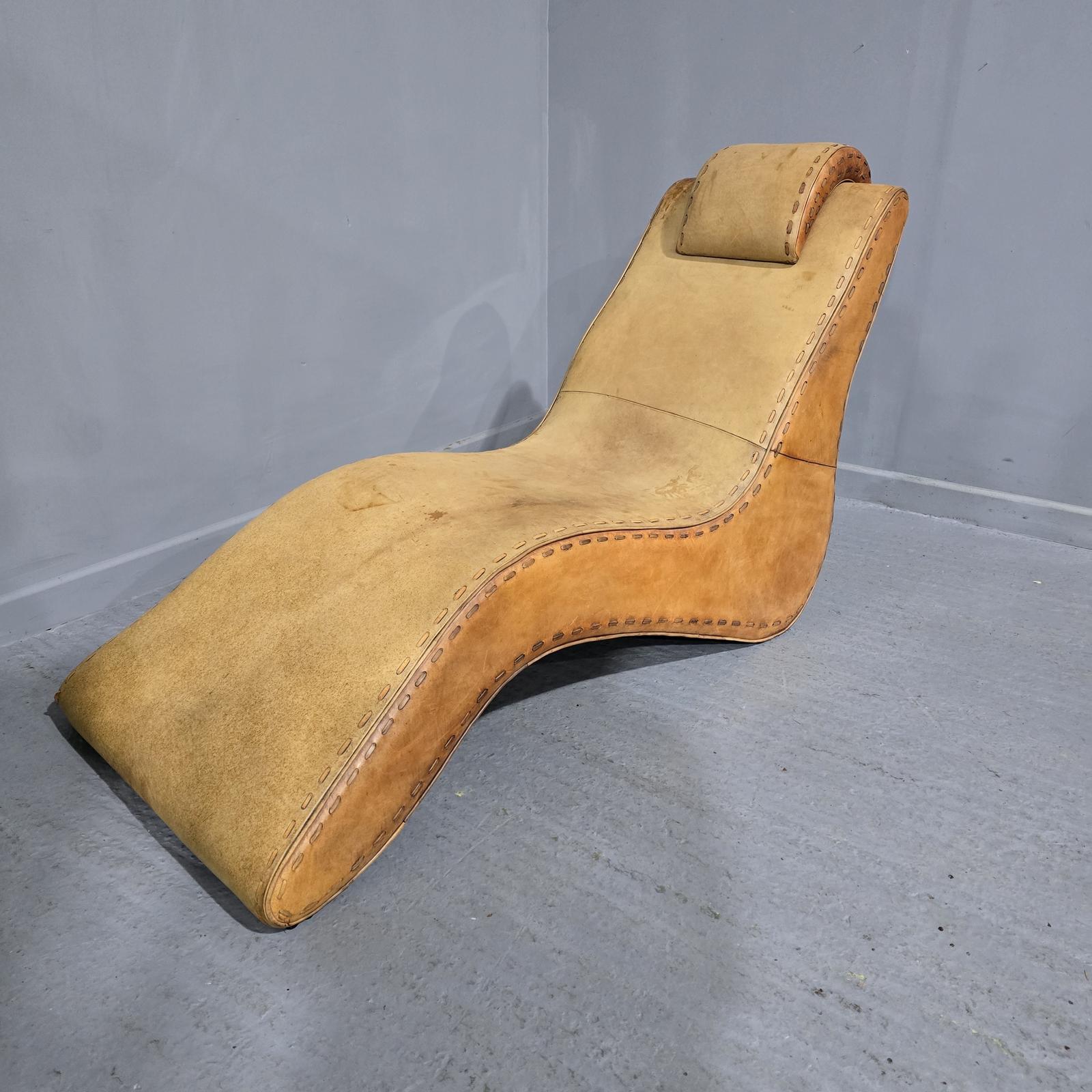 Outstanding faded leather day bed or chaise lounge , so comfortable, leather stitching to sides and removeable cushion, in overall very good condition with no signs of damage to the leather