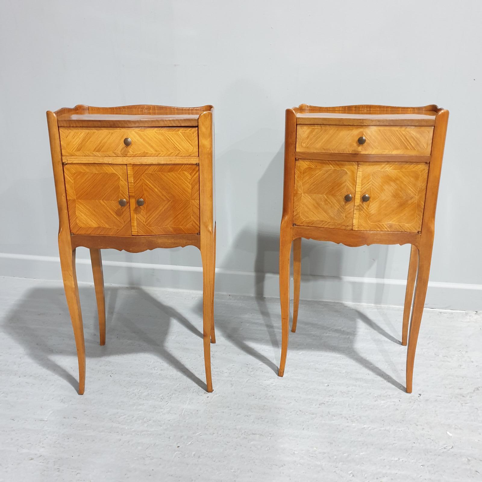 Superb Pair of French Marquetry Bedside Lamp Cabinets