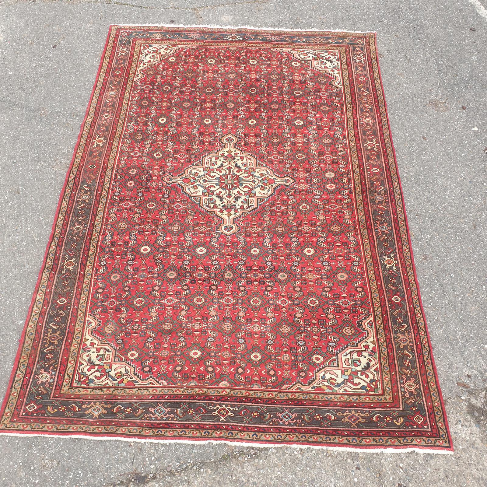 This is a wonderful example of an antique Persian Hamadan room sized carpet in excellent condition.