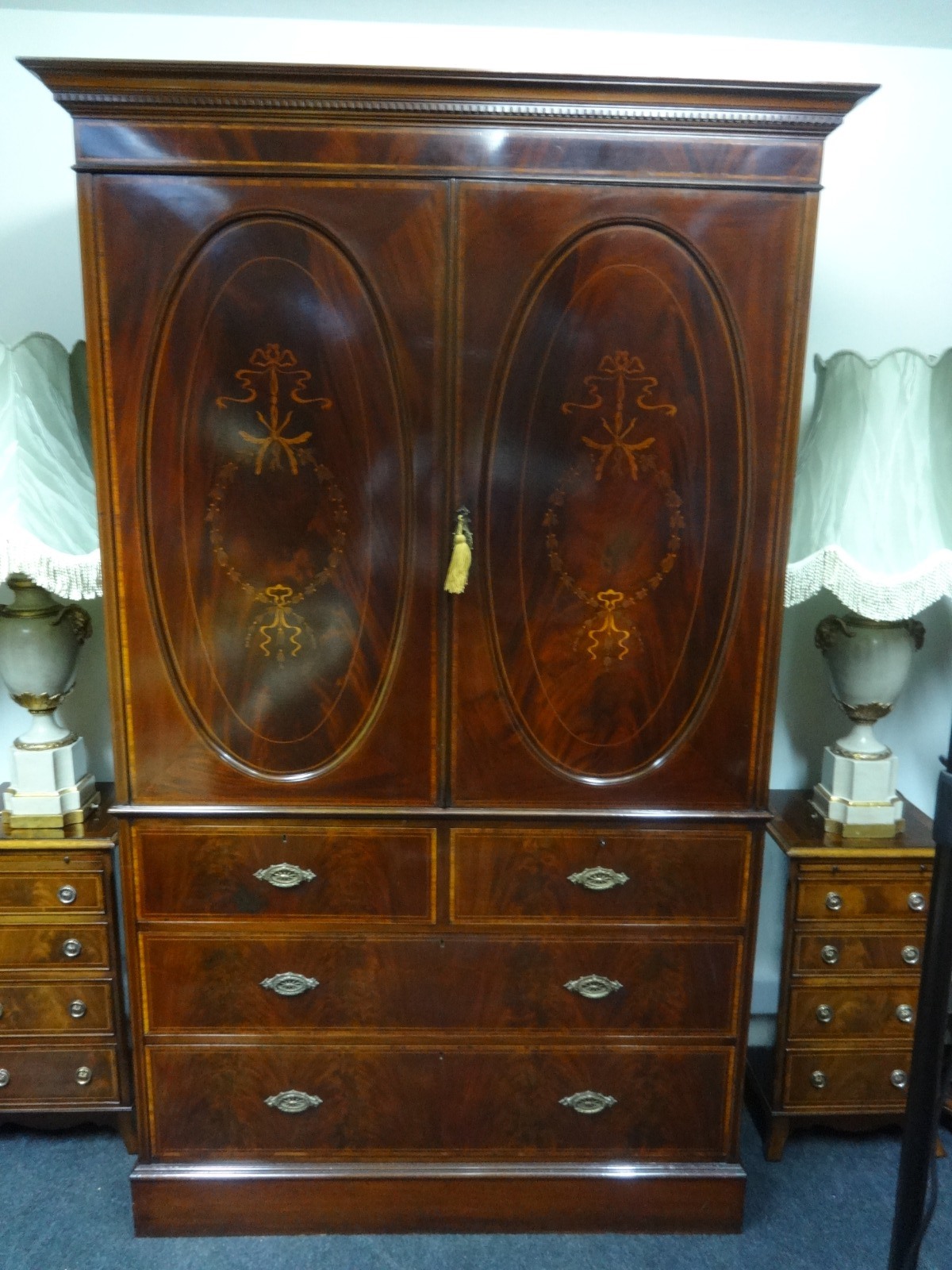 Superb Quality Mahogany Inlaid Linen Press c.1880