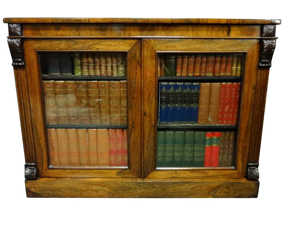 This is a very good Regency antique rosewood library bookcase, enclosing two adjustable shelves, excellent colour and condition.