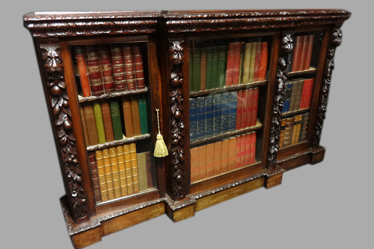 Superb Walnut & Oak Breakfront Library Bookcase C.1870