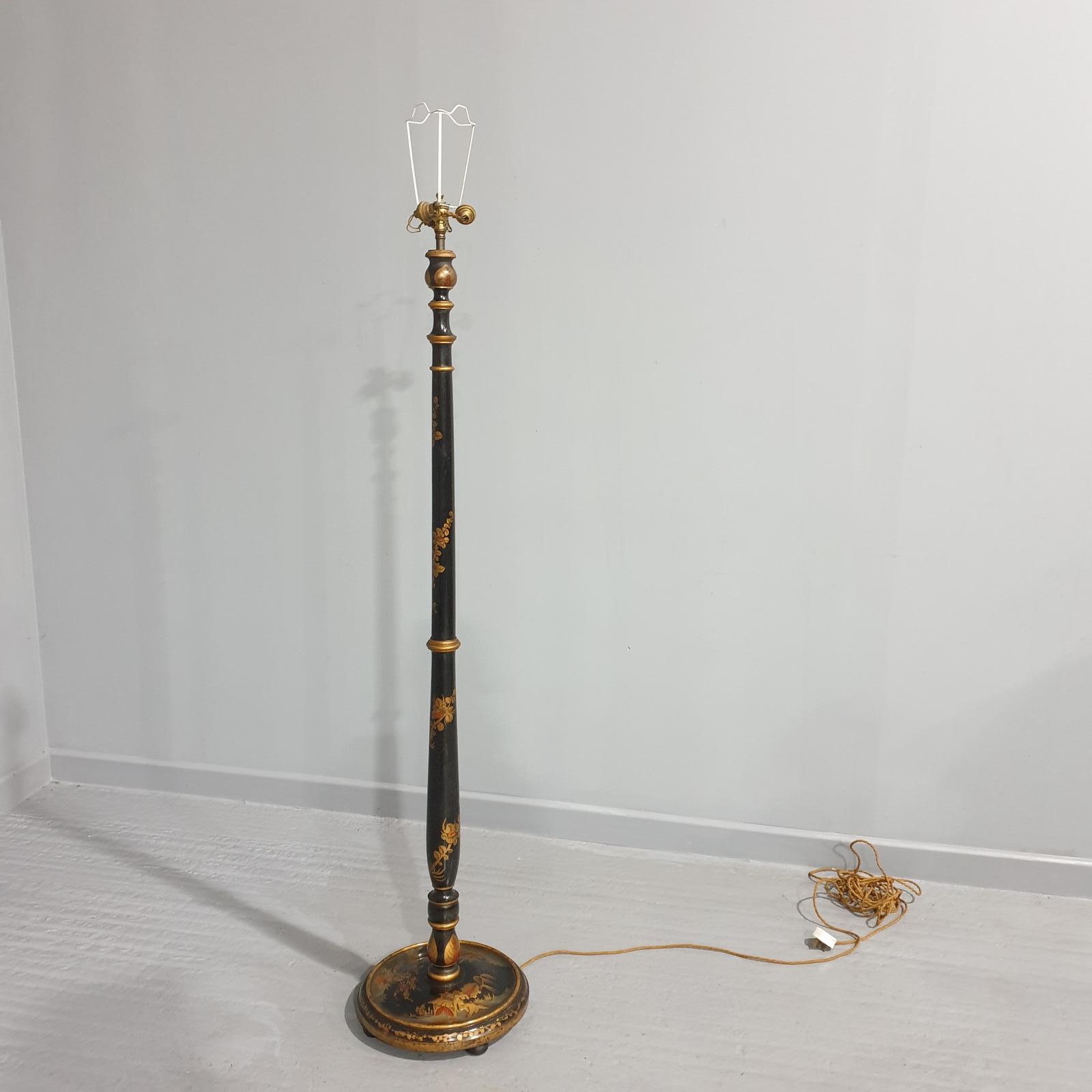 For sale is this very good early 20th Century antique three bulb black chioisier laquered standard lamp, in overall great condition.