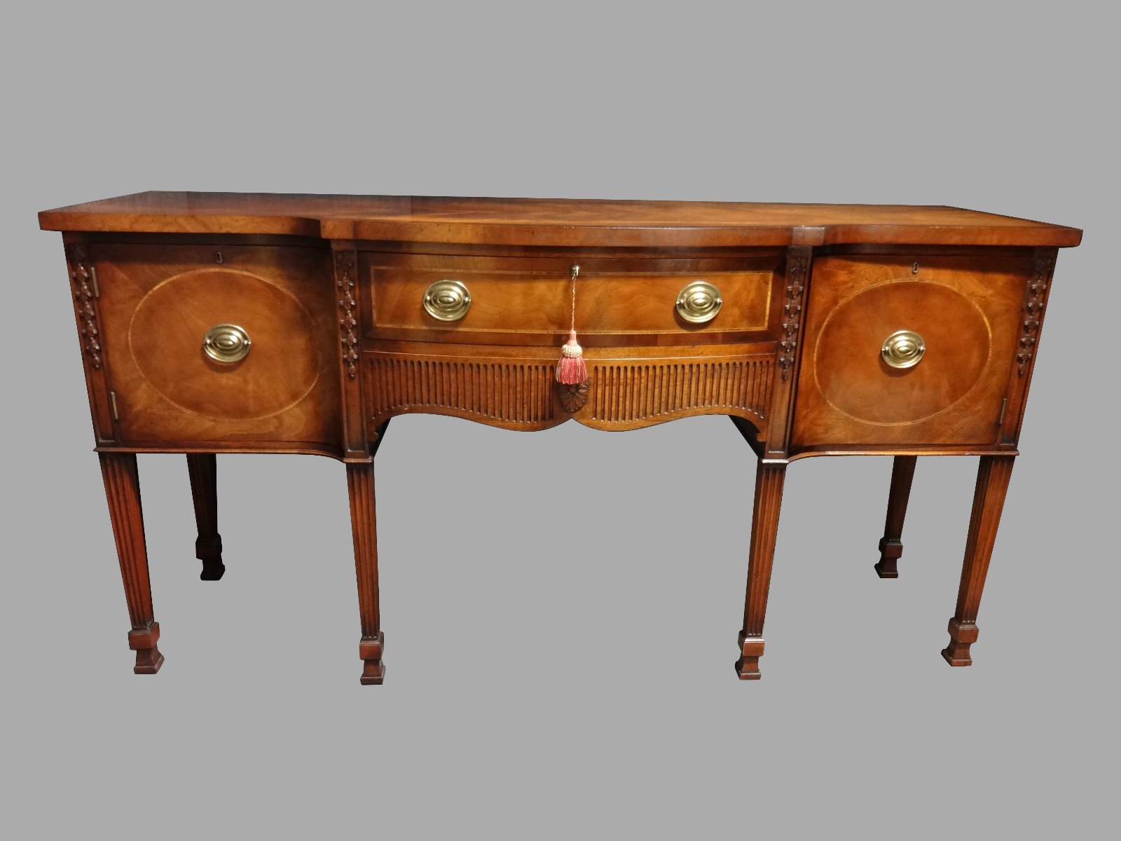An outstanding solid mahogany serpentine sideboard by renound furniture makers 'Titchmarsh and Goodwin', with certificated and badge, all locks are stamped T&G, comes in excellent condition with all locks, recommended retail price £10244.00.