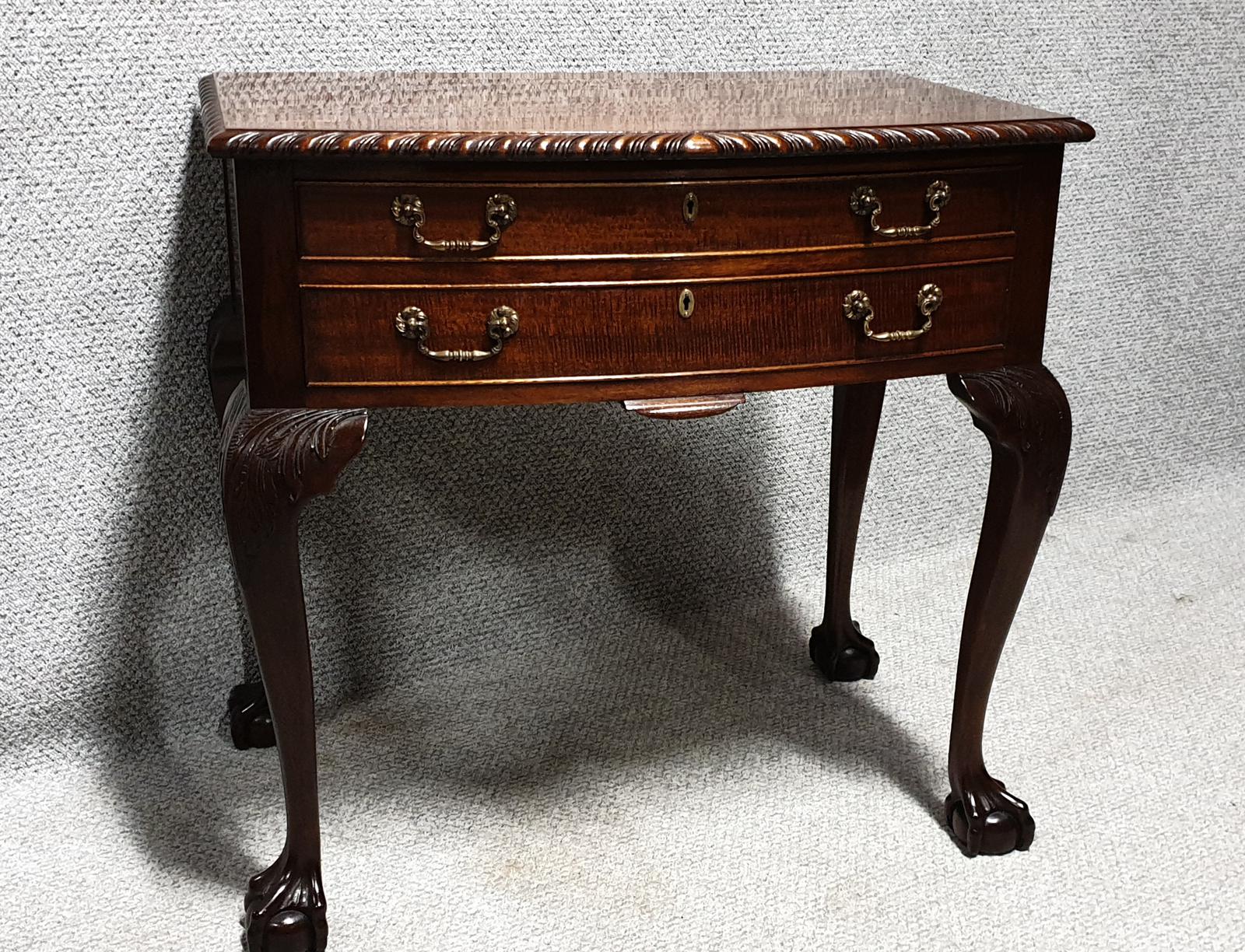 A top quality mahogany freestanding canteen of kings pattern silver plated quality, standing on ball and claw feet.