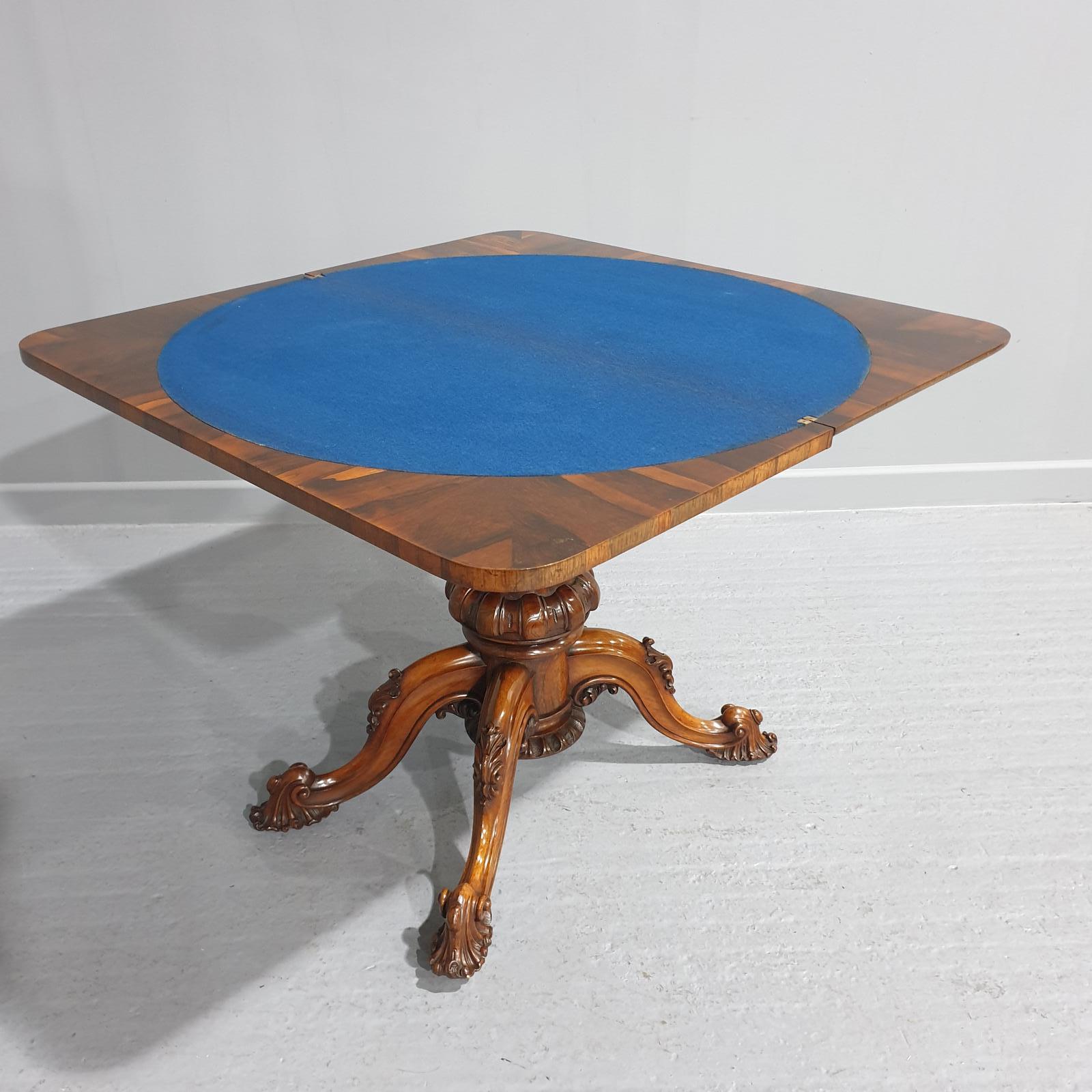 This is a superb quality 19th Century Victorian antique rosewood card table in original excellent condition, wonderful colour, original blue baize lining.