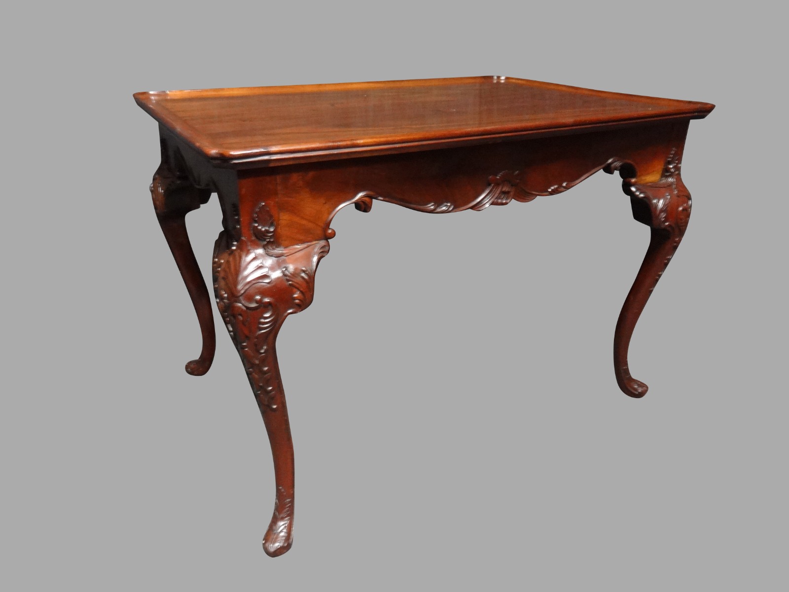 This is a good mahogany coffee table with tray top and lovely carved cabriole legs, in very good condition.