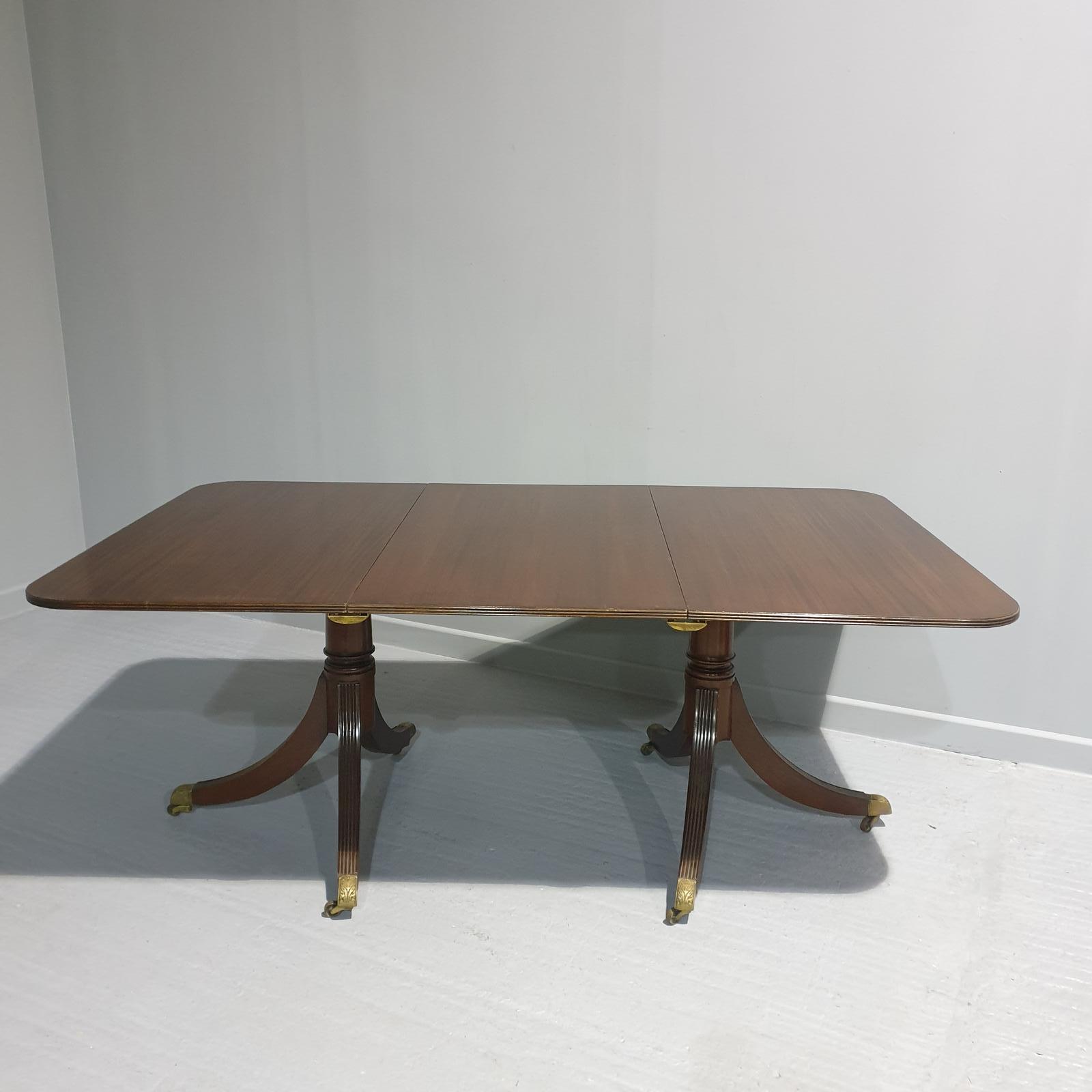 This is a good antique double pedestal solid mahogany single leaf dining table, scrolled brass feet, brass table clips.