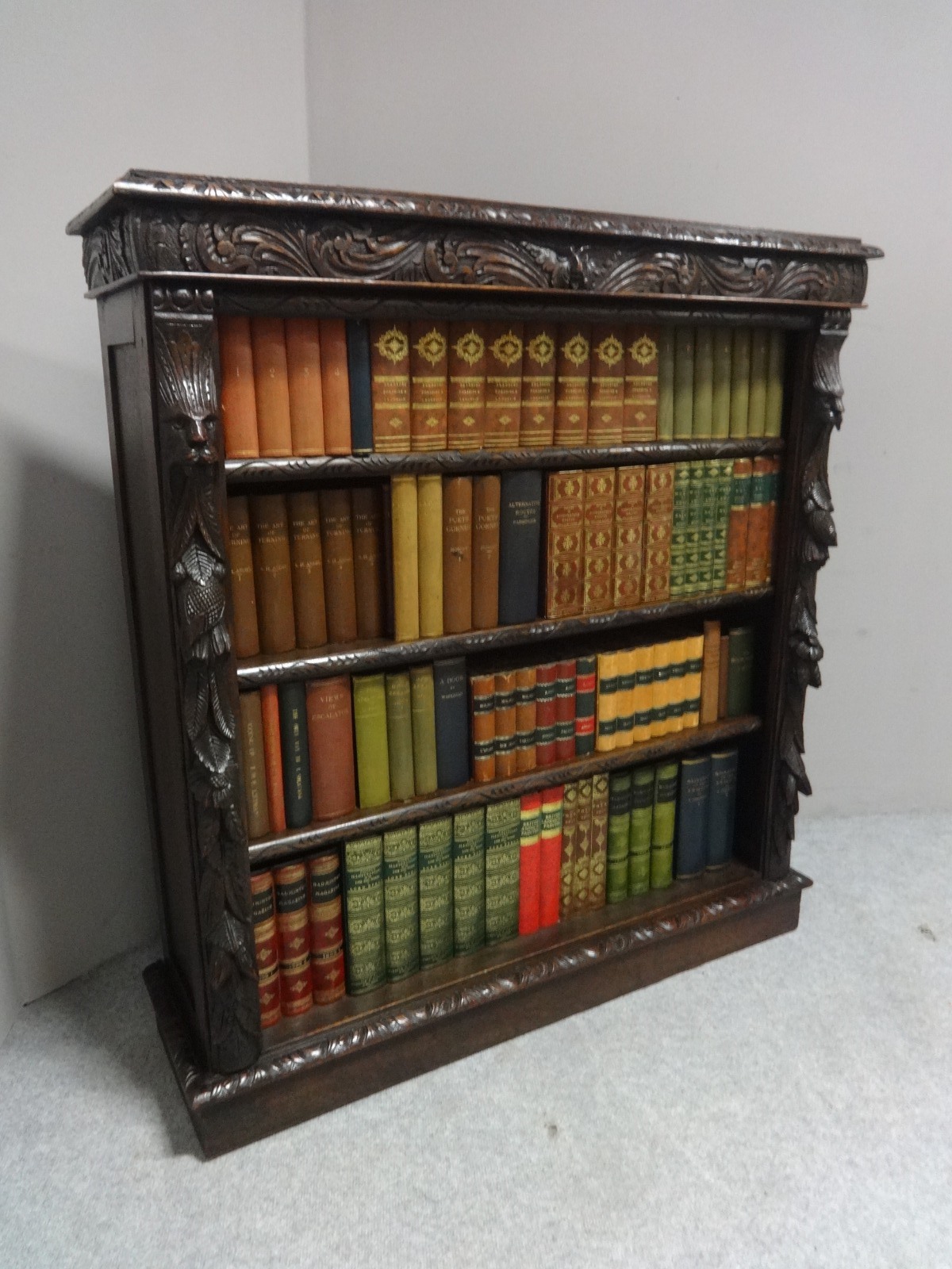 Very good carved oak green man adjustable bookcase in excellent overall condition.