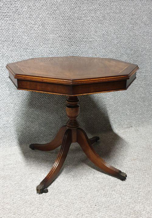 A very nice flame mahogany occasional table with tulipwood inlay, brass paw feet. Excellent colour and condition.