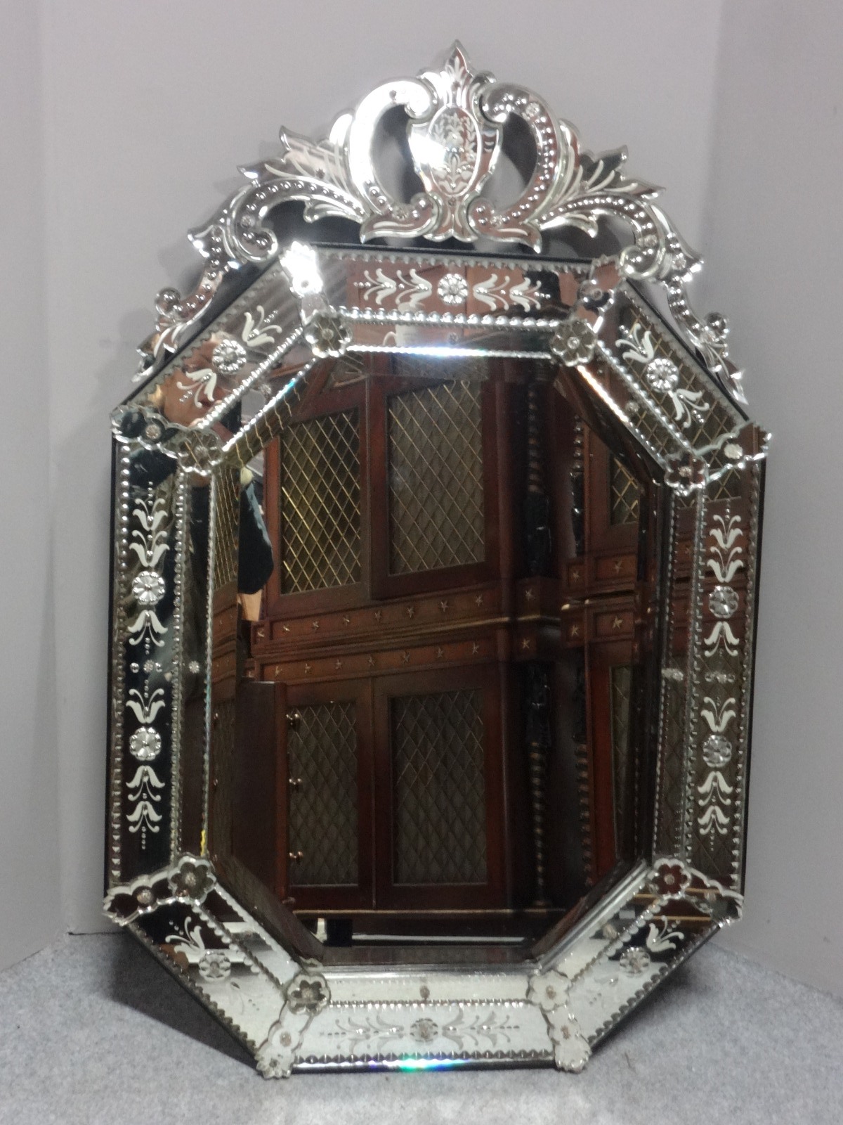 A very good cut glass Venetian wall mirror with central bevelled mirror, surrounding mirrors and crest cut glass, slight foxing, nothing detrimental, in very good original condition.