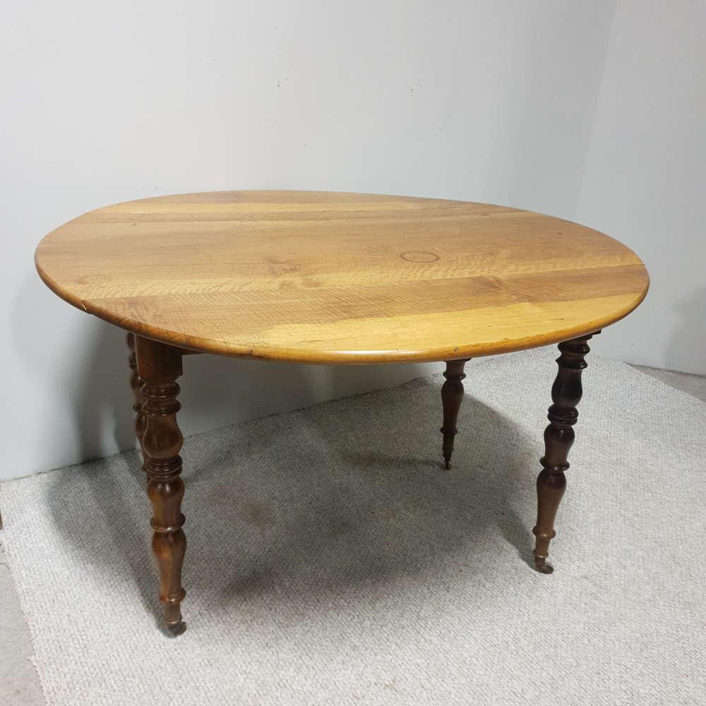 This is a very good late 19th Century French antique fruitwood drop leaf oval dining table, superb turned legs with brass cup castors, and drop leaf top, in great condition.