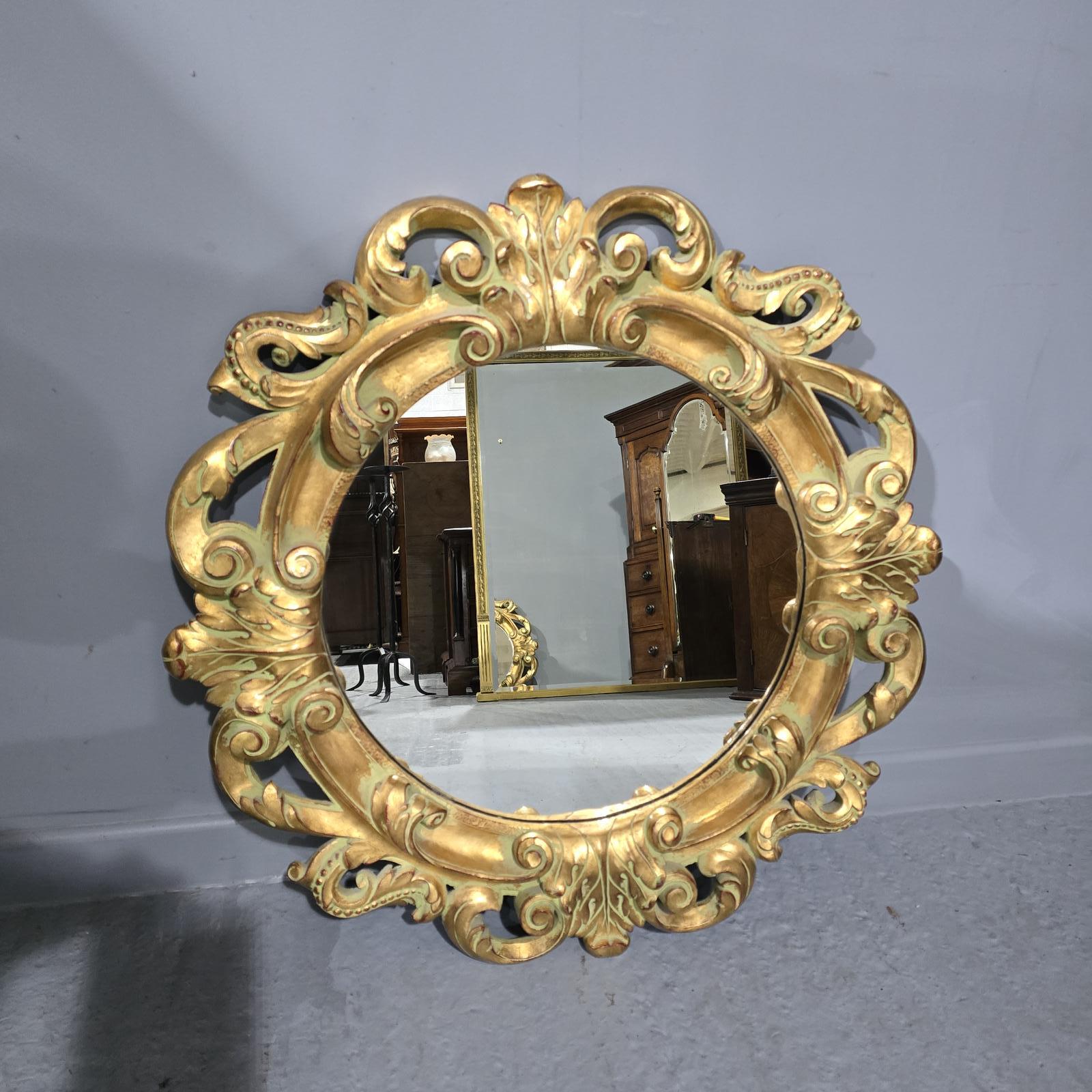 This is a lovely green painted and parcel gilt large round mirror, in very good overall condition.