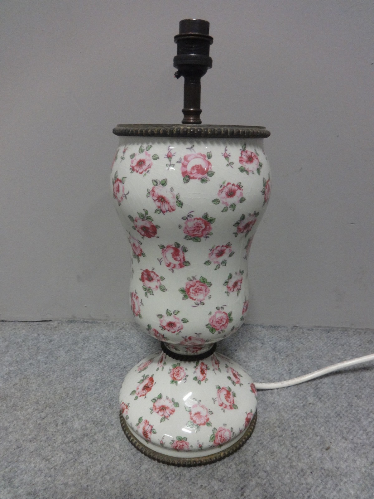 This is a very nice French antique porcelain lamp base, hand painted roses, rewired and ready to go.