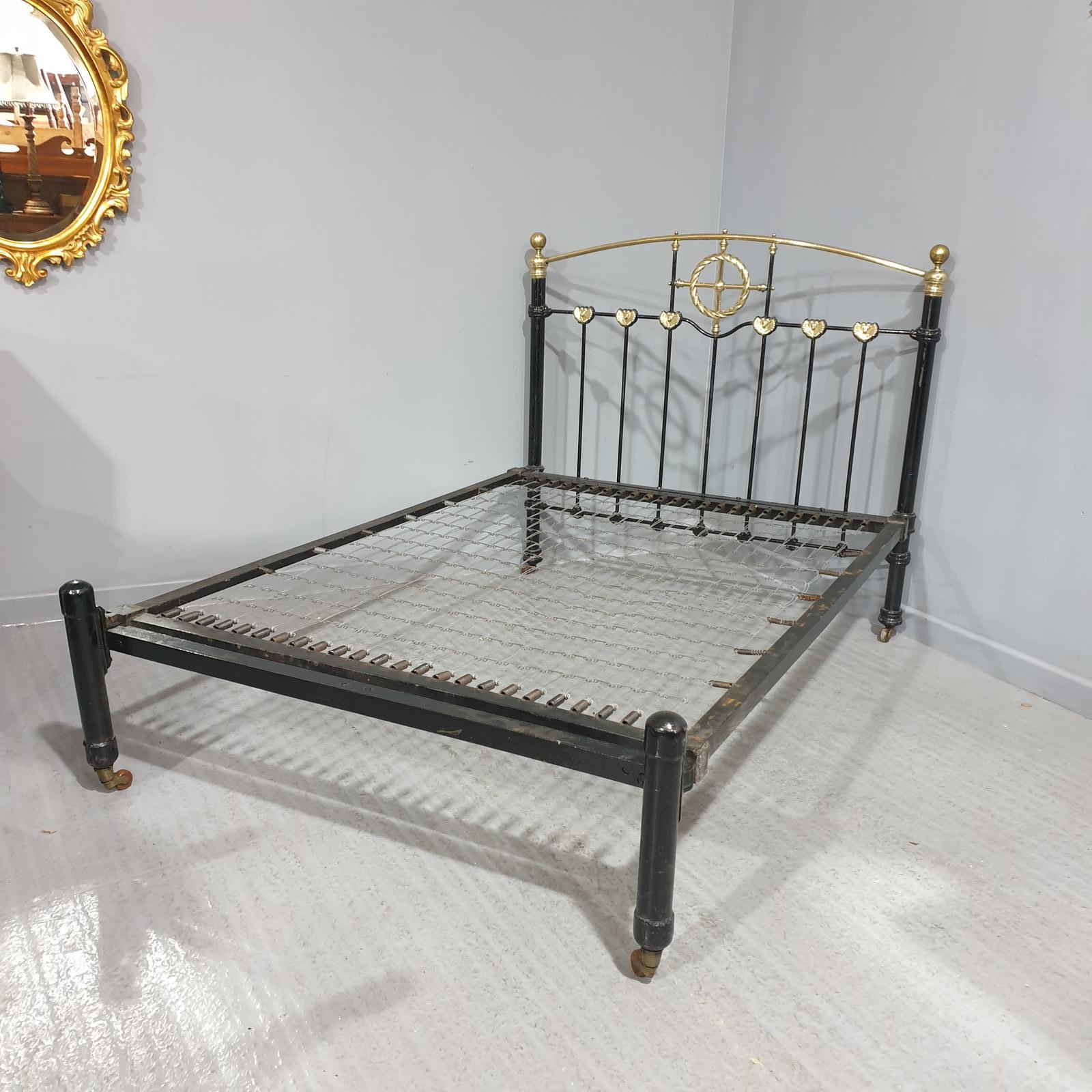This is a very good late 19th Century Victorian antique brass and iron double bed with original spring base, in overall great original condiiton.