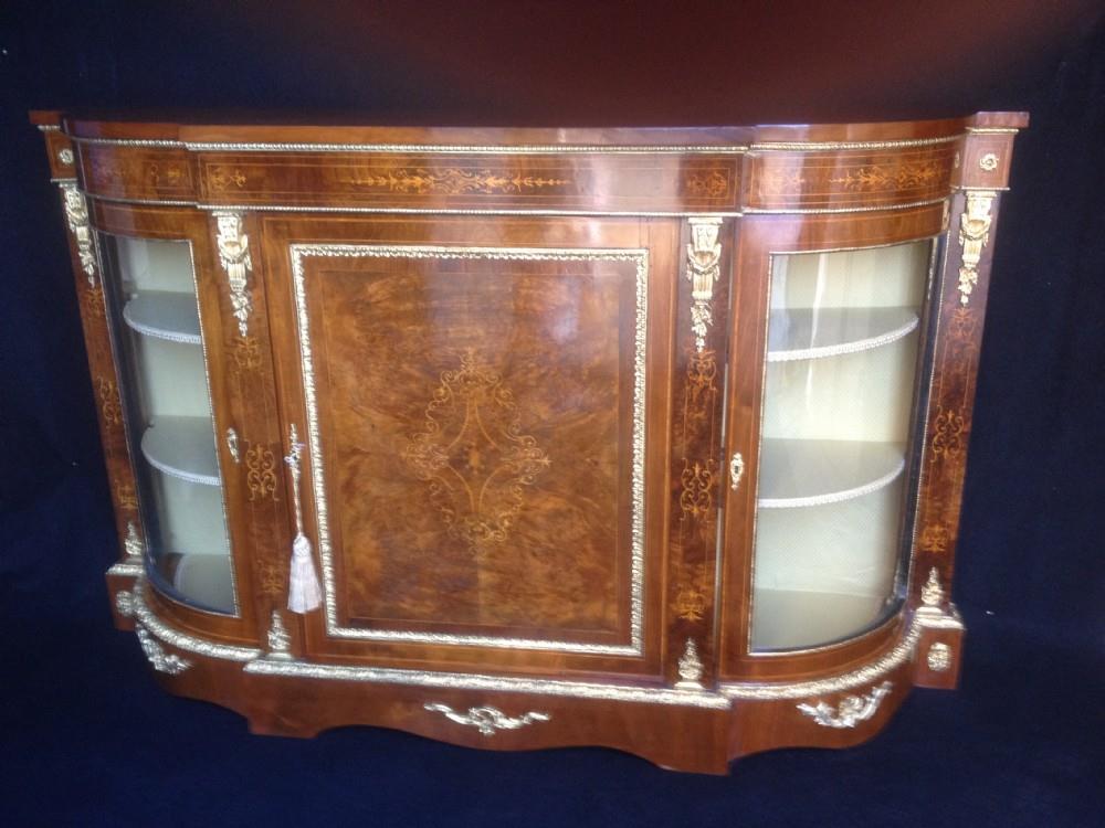 A lovely Victorian Burr Walnut Credenza with top quality ormolu mounts. This antique has been repolished and relined.
