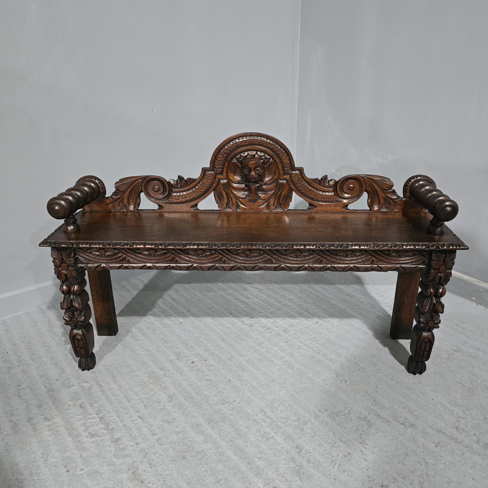 A very good Victorian carved oak bench, hall or window seat, in very good overall condition.