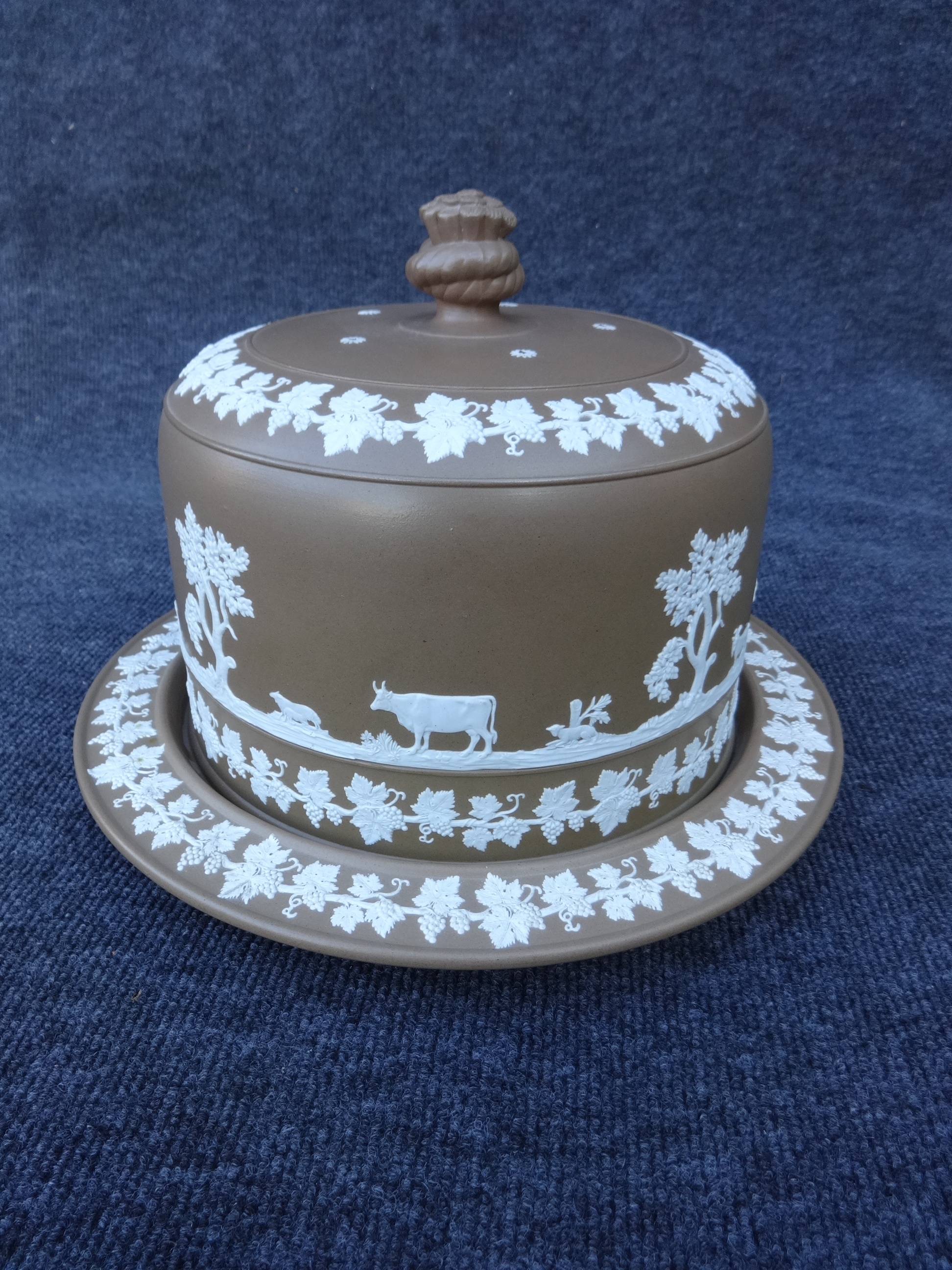 Victorian buff jasper ware cheese bell and stand, impressed mark to the base. in mint condition.