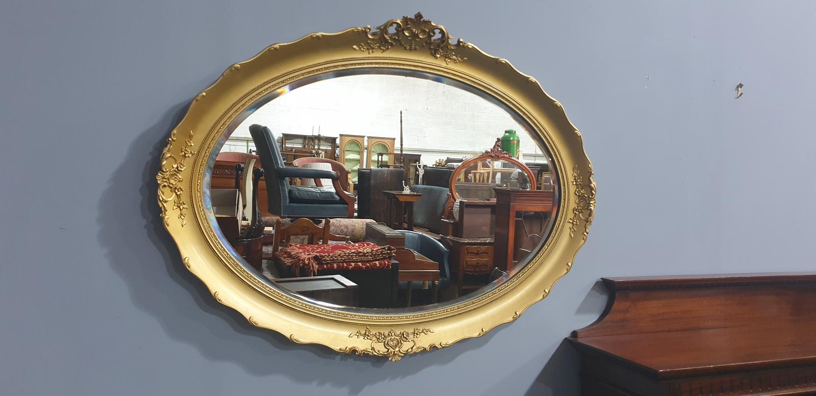 This is a very nice late 19th Century Victorian landscape oval git mirror with original bevelled mirror plate, very slight bloom to plate.