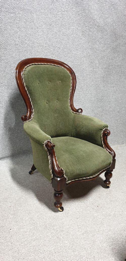 A very nice Victorian mahogany spoon backed Armchair on brown pot castors, excellent condition.