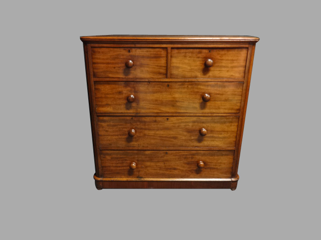 This is a solid 19th Century Victorian antique mahogany five drawer chest of drawers, mahogany drawer linings, very good colour and very good original condition.