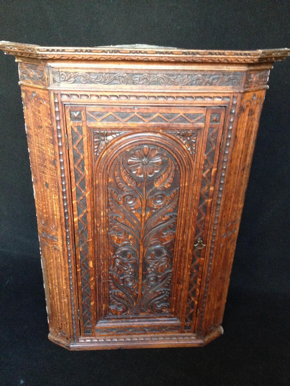 A lovely Victorian Oak Hanging Corner Cabinet with 3 shelves, very crisp carving and very good colour. FREE DELIVERY TO UK MAINLAND.