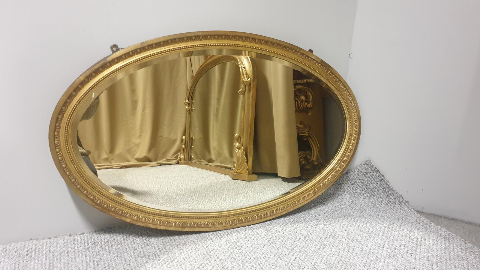 This is a very nice Victorian antique oval gilt mirror with original bevelled glass, can be hung portrait or landscape.