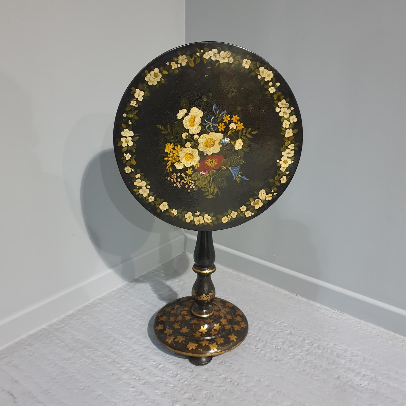 This is a very good 19th Century Victorian antique papier mache pedestal table with good hand painted and gilded decorations. in very good original condition.